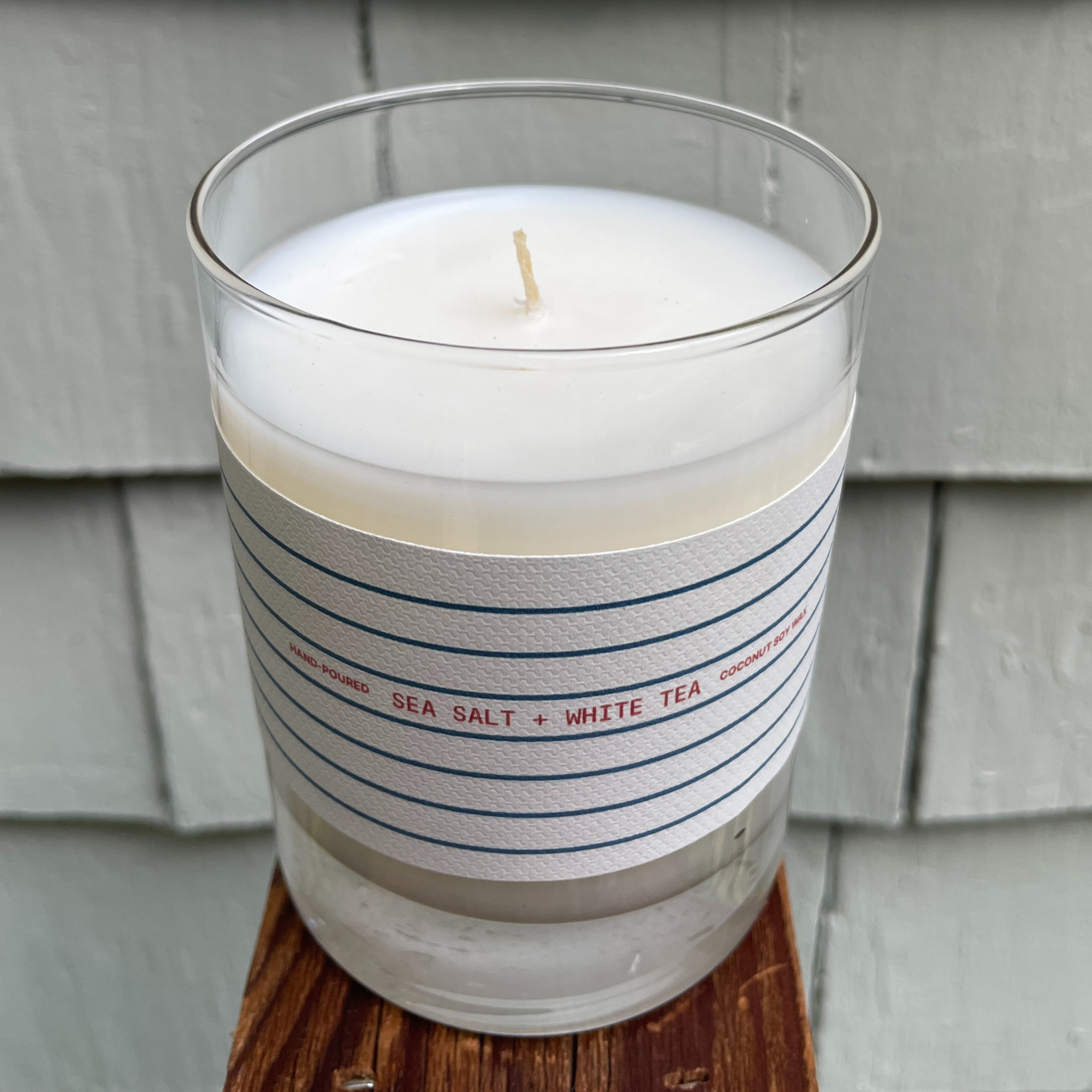 Sea Salt + White Tea is an uplifting scent that captures the calm of the coast, blending white tea, sea salt and amber.